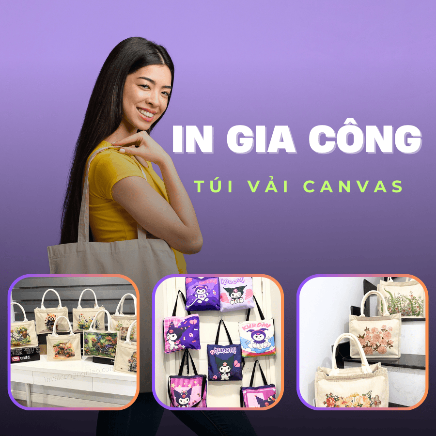 In gia công lên túi vải canvas | Tìm hiểu quy trình chi tiết, từ thiết kế đến hoàn thiện. Túi vải canvas in logo theo yêu cầu, giá rẻ, chất lượng cao. Giao hàng nhanh chóng trên toàn quốc.
