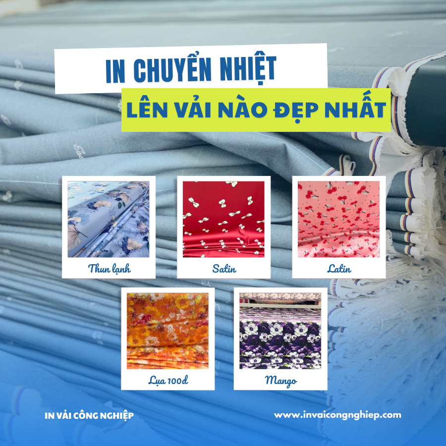 In chuyển nhiệt lên vải là kỹ thuật hiện đại giúp tạo ra họa tiết sắc nét và bền màu, nhưng không phải loại vải nào cũng phù hợp. Để đạt chất lượng tối ưu, việc lựa chọn đúng chất liệu là yếu tố quyết định. Trong bài viết này, In Vải Công Nghiệp sẽ hướng dẫn bạn cách chọn loại vải tốt nhất, quy trình in chuyển nhiệt chuẩn cùng danh sách các chất liệu vải lý tưởng để áp dụng phương pháp này.