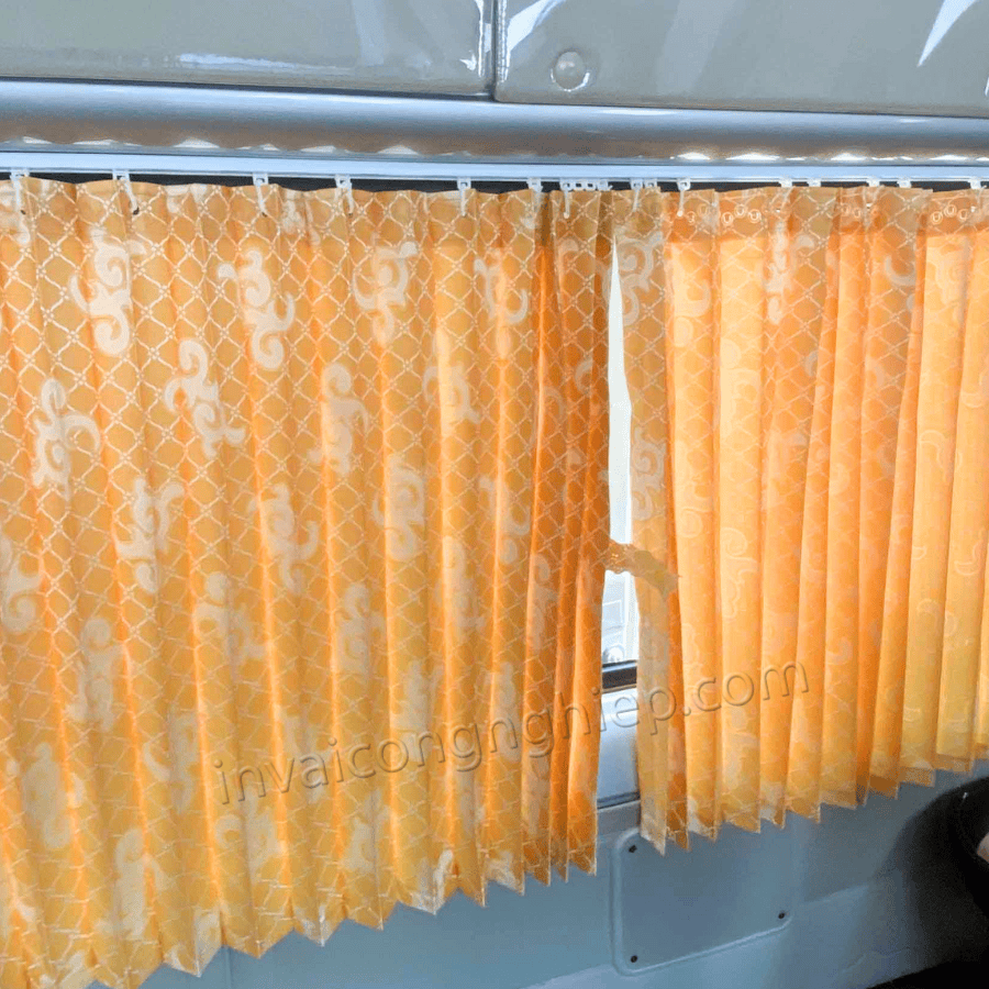 Không gian xe khách sang trọng, chuyên nghiệp với rèm cửa thiết kế riêng. In rèm cửa xe khách theo mọi phong cách, phù hợp với mọi loại xe. Đa dạng mẫu mã, chất liệu vải.
