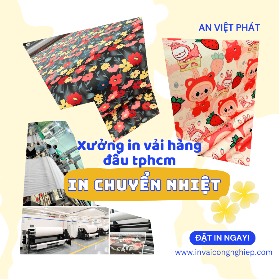 Xưởng in vải chấtlượng An Việt Phát sẽ giúp bạn tạo nên những sản phẩm đẹp mắt nhất, mang đến sự lựa chọn hoàn hảo cho bạn. Chúng tôi cam kết: